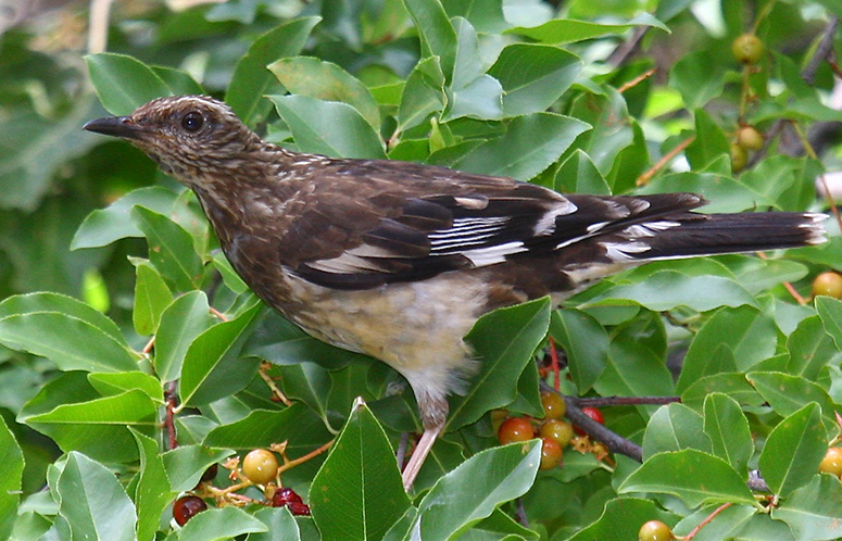 several sightings in between but it is not known how many birds are involved. Aztec Thrush is a rare visitor to the middle elevations of the mountains of SE Arizona where it often wanders widely in search of fruit. It has become increasingly regular in the last few years and now occurs annually, most often in the late summer and early fall when ripe fruits are most available. Seen well it is unmistakable. However, with only partial looks, juvenile
