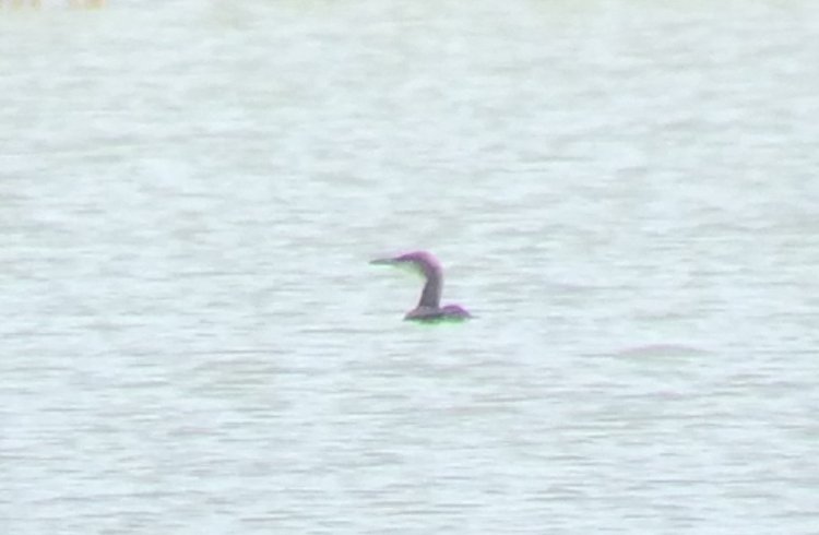 Pacific Loon (Gavia pacifica), Martinez Lake, Yuma CountyThis Pacific Loon was photographed by Lauren Harter on 12 May 2015 Casual at best in Yuma County, where there are no recent records. The date is also extremely late for a Pacific Loon in Arizona, though not unprecedented. Though the pictures are low quality, most salient ID points are visible including medium-size bill, lack of white above the eye, smooth line of contrast on the head and neck with no jagged edge as in Common Loon, silvery nape, and smoothly rounded head and neck.