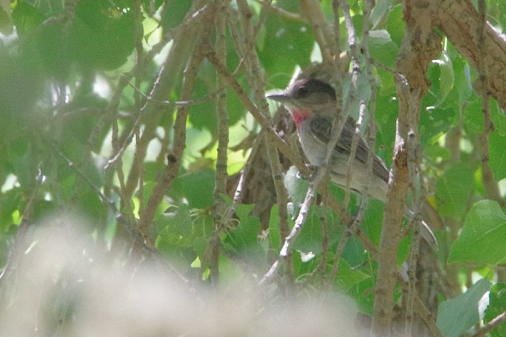 winter in the area. Once a regular breeding species in a few locations, Rose-throated Becard had almost disappeared from Arizona and was placed on the review list. Recently multiple individuals have been found along the Santa Cruz River, including at least three nesting pairs in 2018. The adult male is nearly unmistakable with the